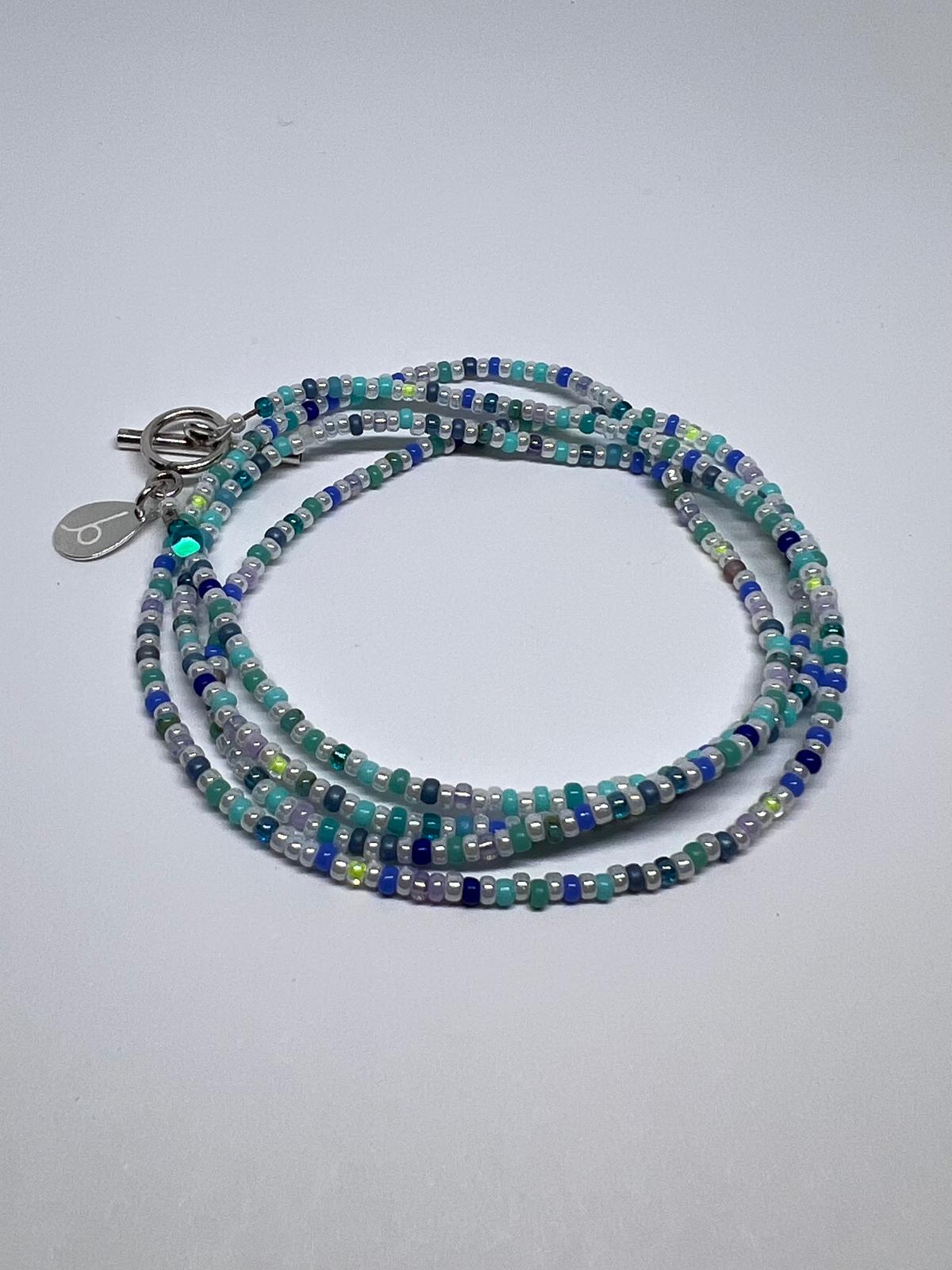 Möchten Sie Ihrem Look eine unverwechselbare, maritime Note verleihen und gleichzeitig von der harmonisierenden Kraft der Farbe Blau profitieren? Warten Sie nicht länger auf das perfekte Accessoire. Da jedes unserer Beads Wickelarmbänder Blau 4-Fach in aufwendiger Handarbeit als Unikat gefertigt wird, ist die Stückzahl streng begrenzt.