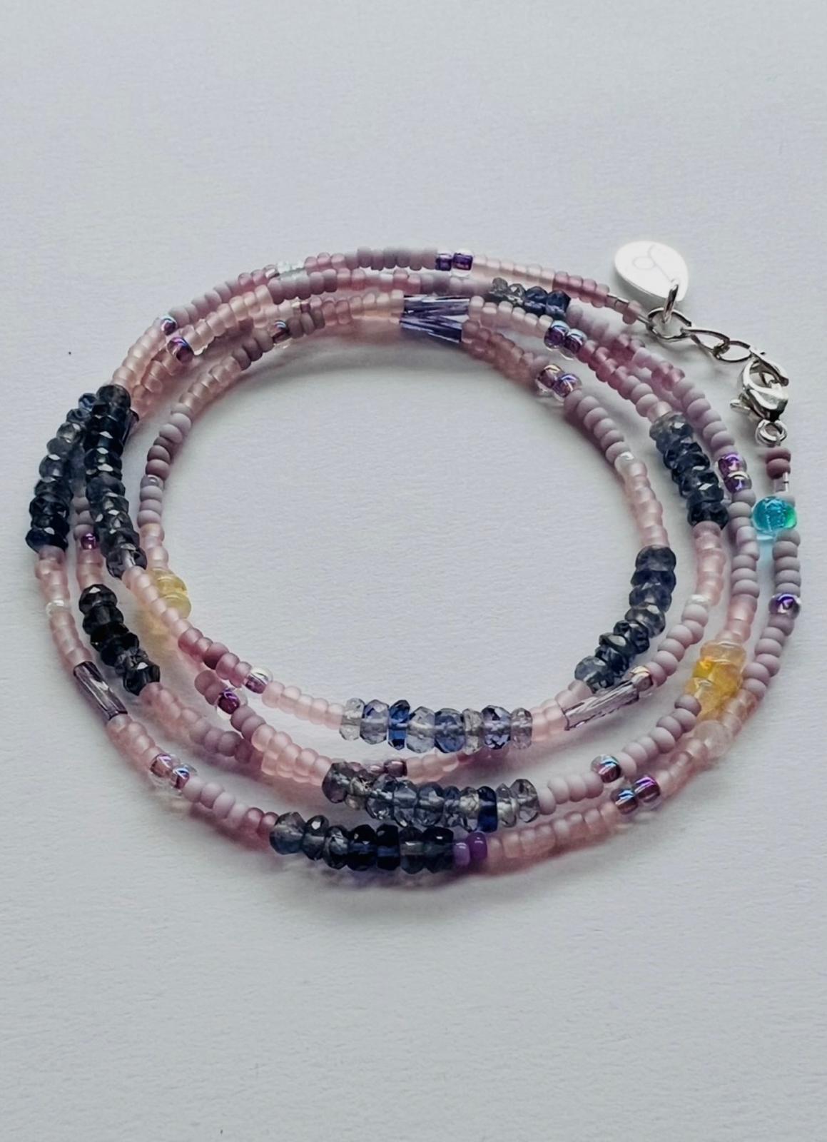 Entdecken Sie das exklusive Beads Wickelarmband Lolith Violett – ein meisterhaftes Wickelarmband handgemacht aus echten Iolith-Edelsteinen. Dieses edle Damen Armband kombiniert die Kraft eines Edelstein Energie Armband mit mystischem Violett. Perfekte Geschenkidee Armband für Intuition und Stil. Jetzt Naturstein Schmuck online kaufen!